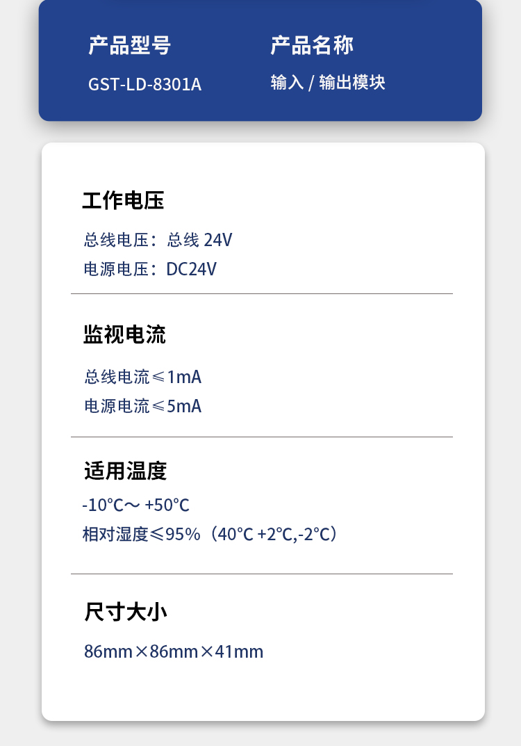 二、海灣GST-LD-8301A輸入輸出模塊參數