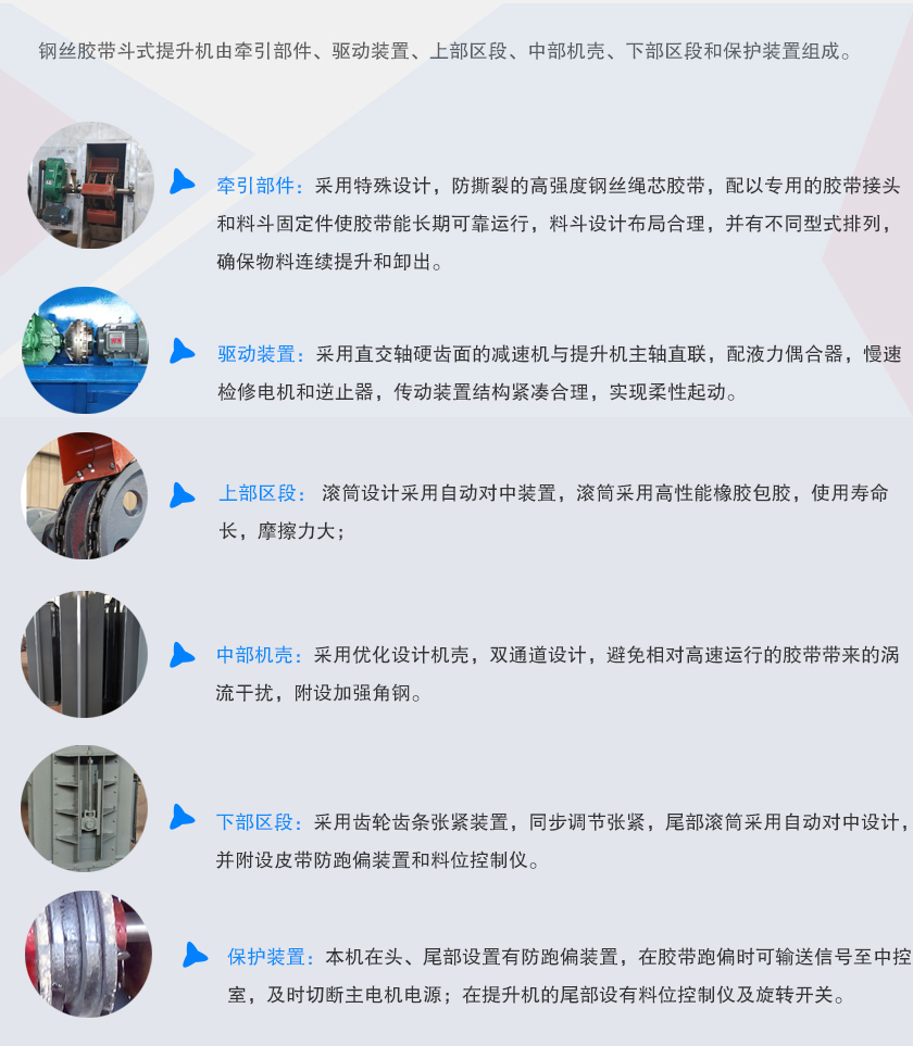 TG系列鋼芯膠帶斗式提升機(jī)的各部位特點(diǎn):
